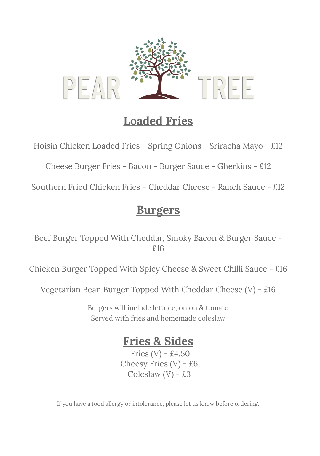 If you require information about the presence of allergens in any of our food or drink we would be happy to provide it in advance of your visit, or please ask Molly or Nyle before you book with us.